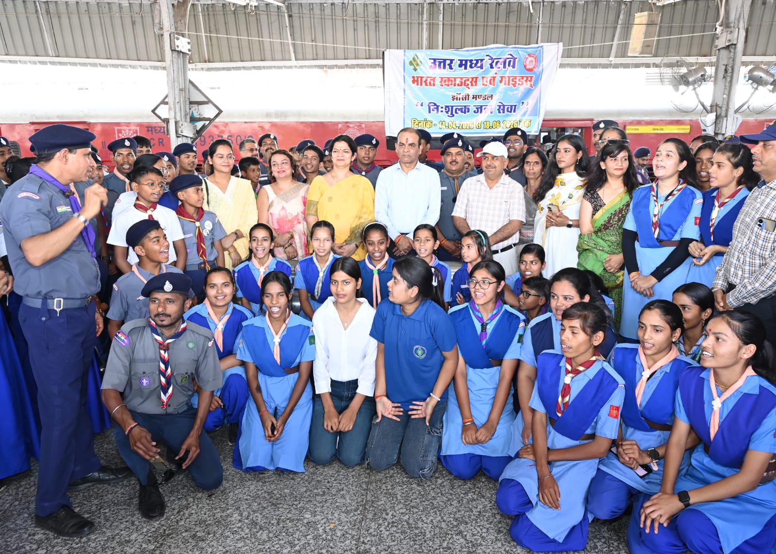 उत्तर मध्य रेलवे, भारत स्काउट्स एवं गाइड्स, झांसी मंडल द्वारा रेल यात्रियों की सुविधा हेतु झांसी रेलवे स्टेशन पर नि:शुल्क जल सेवा का शुभारंभ किया गया। इस सेवा का उद्घाटन मंडल रेल प्रबंधक, झांसी श्री अनिरुद्ध कुमार की गरिमामयी उपस्थिति में मुख्य अतिथि श्रीमती जया शर्मा, अध्यक्षा, महिला समाज सेवा संगठन, झांसी द्वारा यात्रियों को स्वयं जल वितरित कर किया गया।