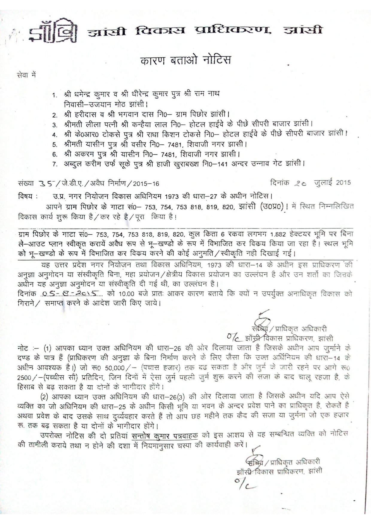 न्याय की लड़ाई बनी सजा- वर्ष 2015 में जब मुन्ना लाल कुशवाहा ने न्यायालयों का दरवाजा खटखटाया और अवैध कॉलोनियों के खिलाफ आवाज उठाई, तभी से उनके खिलाफ प्रताड़ना का सिलसिला शुरू हो गया। आरोप है कि उन पर और उनके पुत्रों पर बार-बार झूठे मुकदमे दर्ज कराए गए और उन्हें जेल भेजा गया।