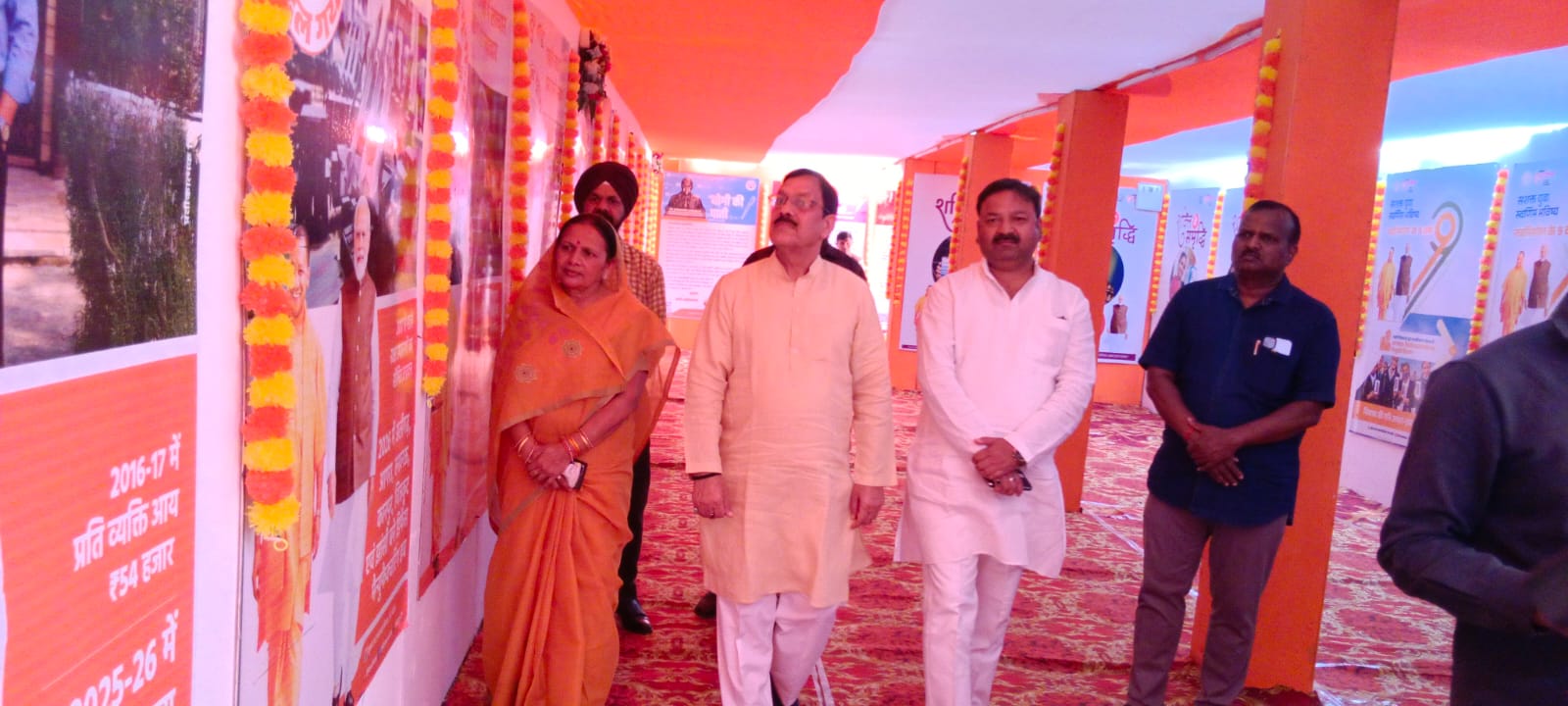 प्रदर्शनी शुभारंभ कार्यक्रम में सदस्य विधान परिषद उत्तर प्रदेश श्री रामतीर्थ सिंघल ने अपने सम्बोधन में कहा कि आज से 09 वर्ष पूर्व वर्तमान सरकार को प्रदेश की बागडोर संभालने का अवसर प्राप्त हुआ, वर्तमान सरकार ने इन 09 वर्षों में अभूतपूर्व कार्य करते हुए आमजनमानस के हृदय में एक विश्वास धारण किया है। सरकार ने अभूतपूर्व कार्य करते हुए रोगियों के उपचार के लिए आयुष्मान कार्ड के माध्यम से 50 लाख का बीमा दिया। उन्होंने कहा कि केंद्र सरकार द्वारा संचालित योजनाओं के क्रियान्वयन में भी उत्तर प्रदेश राज्य को महत्वपूर्ण स्थान प्राप्त है। सरकार के सत्ता में आने के पश्चात उत्तर प्रदेश पहले उत्तम प्रदेश और उत्तम प्रदेश से उत्सव प्रदेश बना है, यह सभी प्रदेशवासियों के लिए अत्यधिक गर्व की बात है।