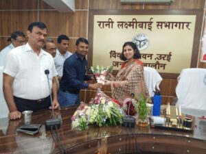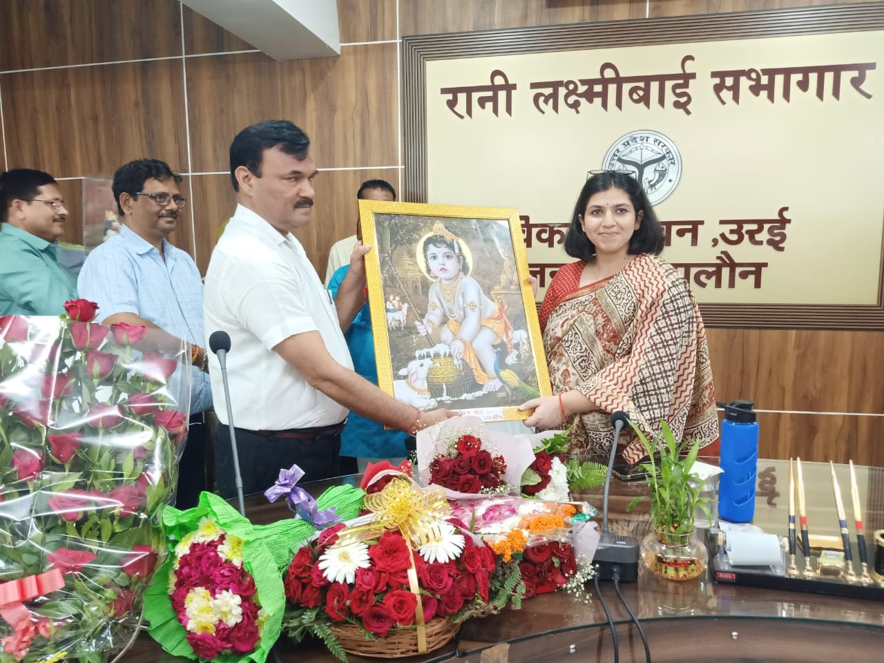 जिलाधिकारी राजेश कुमार पाण्डेय व निवर्तमान जिलाधिकारी चाँदनी सिंह ने विकास भवन में मुख्य विकास अधिकारी कार्यालय व रानी लक्ष्मीबाई सभागार का सौन्दर्यीकरण कराया गया जिसका फीता काटकर शुभारम्भ किया गया। जिलाधिकारी राजेश कुमार पाण्डेय का स्वागत व निवर्तमान जिलाधिकारी चाँदनी सिंह का विदाई समारोह विकास भवन के रानी लक्ष्मीबाई सभागार में आयोजित किया गया। निवर्तमान जिलाधिकारी ने अपने कार्यकाल के दौरान समस्त अधिकारियों व कर्मचारियों का सहयोग प्रदान करने के लिये धन्यवाद दिया। मुख्य विकास अधिकारी भीमजी उपाध्याय ने कहा कि निवर्तमान जिलाधिकारी के साथ कार्य करने में न केवल अधिकारी व कर्मचारी गौरवान्वित हुये बल्कि उनकी कार्यप्रणाली से जनपद भी गौरवान्वित हुआ। अपर जिलाधिकारी (वि0/रा0) संजय कुमार ने कहा कि जनपद के लिये आप द्वारा किये गये कार्यो से एक नया आयाम स्थापित हुआ है, आप द्वारा दिये गये निर्देशों का शत प्रतिशत पालन किया गया और काफी सीखने को भी मिला। अपर जिलाधिकारी नमामि गंगे विशाल यादव ने कहा कि आपके साथ बिताये गये कार्यकाल के अनुभव को साझा किया कि आपके मार्गदर्शन एवं मार्ग निर्देशन में कार्य करते हुये बहुत कुछ सीखने को मिला जोकि मेरी आगे की सेवाकाल में बहुत ही उपयोगी सिद्ध होगा। उन्होने कहा कि आप द्वारा जनपद के लिये किये गये कार्य सराहनीय रहे जैसे- उरई शहर के चैराहो का सौन्दर्यीकरण एवं चैड़ीकरण, इखलासपुरा से शिवाजी चैक तक एस0एच0-21 डिवाईडर पर 4.1 किमी0 लगात रू0 1 करोड़ 05 लाख की लगात से आॅक्टोगोनल पोट एल0ई0डी0 सहित (स्ट्रीट लाईट) 163 लगने से जगमग हुआ शहर, शहर का सौन्दर्यीकरण होने से एक अलग पहचान बनी, स्मार्ट सिटी के रूप में टाउनहाॅल हुआ विकसित, शहर को स्वच्छ बनाने के लिये अनेक प्रयास कर सुन्दर पार्क विकसित किये गये, अवैध अतिक्रमण से धर्मशाला को मुक्त कराया जो उरई शहर के लिये नजीर बना हैं। इस अवसर पर मुख्य चिकित्साधिकारी डा0 एन0डी0 शर्मा, परियोजना निदेशक शिवाकान्त द्विवेदी, श्रम उपायुक्त अवधेश दीक्षित, नगर मजिस्ट्रेट अरूण कुमार मिश्रा, अपर जिला सूचना अधिकारी पंकज तिवारी आदि सहित संबंधित अधिकारियों ने निवर्तमान जिलाधिकारी को भावभीनी विदाई दी।