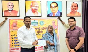 इस मौके पर वरुण कुमार पांडेय नगर मजिस्ट्रेट/सभापति मंडी समिति झांसी ने बताया कि मण्डी परिषद / मण्डी समिति द्वारा संचालित कल्याणकारी योजना, मुख्यमंत्री कृषक दुर्घटना सहायता योजना के अन्तर्गत अच्छादित होने वाले कृषक भैयालाल की खेत पर कार्य करते समय मृत्यु होने पर उनकी पत्नी श्रीमती रामश्री पत्नी स्व0 भैयालाल निवासी ग्राम छत्तपुर पोस्ट राजापुर बछौनी झाँसी को रूपये 3,00,000.00 की सहायता धनराशि एवं अनुज राजपूत पुत्र अशोक राजपूत निवासी ग्राम नोहरा पोस्ट घिसौली थाना बबीना झाँसी को खेत पर थ्रेसिंग करते समय दोनों पैर कट जाने पर रूपये 75,000.00 की सहायता धनराशि तथा 2 – मुख्यमंत्री खेत-खलिहान अग्निकाण्ड सहायता योजना के अन्तर्गत योजना से अच्छादित होने वाले कृषक यशपाल सिंह पुत्र राजा सिंह ग्राम घिसौली तहसील व जिला झाँसी के खेत में खड़ी फसल में आग लग जाने के कारण रूपये 30,000.00 की सहायता धनराशि की चैके वितरित की गयीं ।