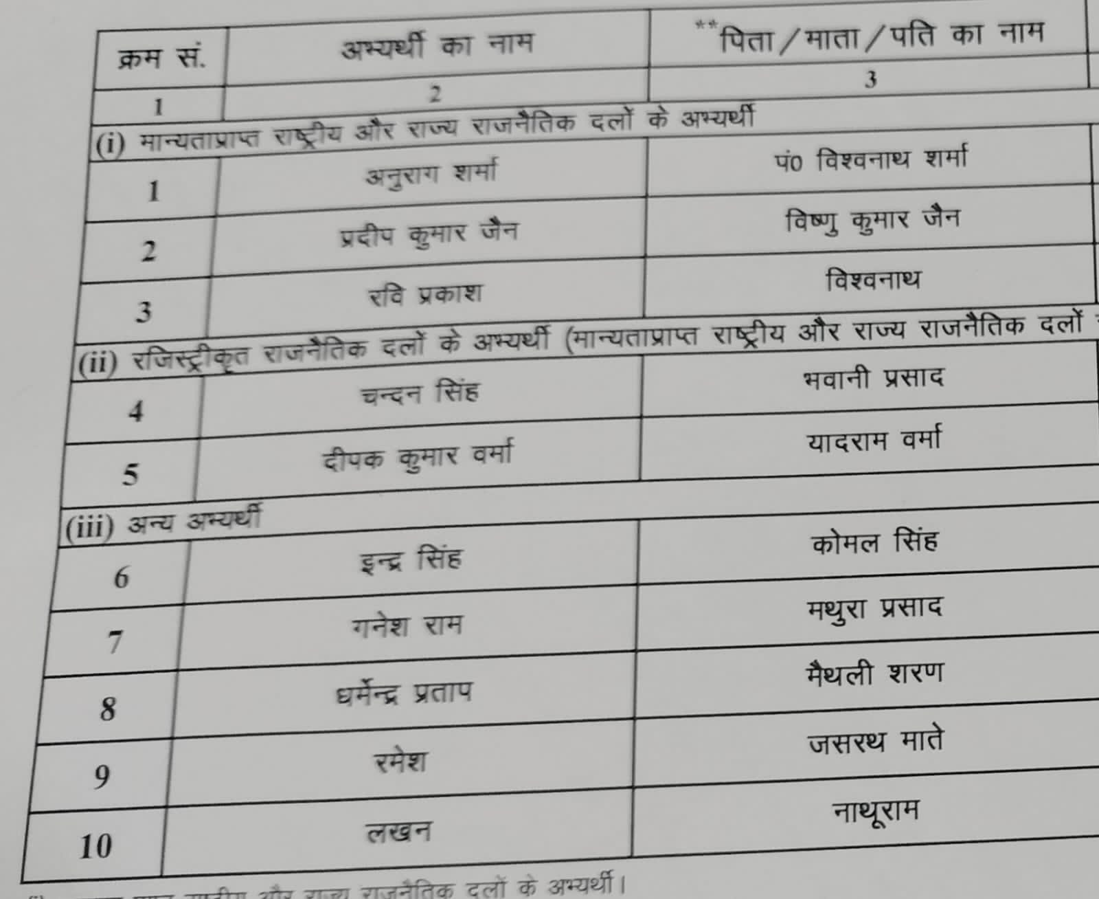 46 झांसी-ललितपुर लोकसभा निर्वाचन क्षेत्र में कुल 21 अभ्यर्थियों द्वारा नामांकन किए गए थे, जिनमें से आज दिनांक 04.05.2024 को नाम निर्देशन पत्रों की संवीक्षा के उपरांत 11 अभ्यर्थियों के नामांकन निरस्त हुए, इनमें से 10 अभ्यर्थियों के नामांकन उनके शपथ पत्र प्रारूप-26 अपूर्ण होने के कारण तथा शेष 01 अभ्यर्थी का नामांकन प्रस्तावक पूर्ण न होने के कारण निरस्त किया गया ।