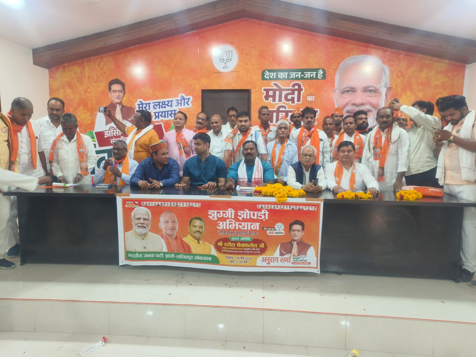 उन्होंने कहा कि मोदी जी आधुनिक और विकसित भारत के निर्माण के लिए संकल्पित है उनके कार्यकाल में चार करोड लोगों को आवास वितरण हो चुके हैं और आगामी कार्यकाल में सभी बस्तियों में एक एक गरीब के आवास का निर्माण और राशन का वितरण होगा उन्होंने पदाधिकारी को निर्देशित करते हुए कहा कि झांसी ललितपुर लोकसभा प्रत्याशी अनुराग शर्मा को भारी मतों से विजयी बनाने के लिए पदाधिकारी को कार्य एवं जिम्मेदारी निभाने के लिए प्रेरित करना अति आवश्यक है पहले सामान्य आम जन मानस ये बोला करता था कि राजनीति से कुछ नहीं बदलेगा ,10 वर्ष के अंदर प्रधानमंत्री श्री नरेन्द्र मोदी जी ने राजनीति की परिभाषा और राजनीति की संस्कृति बदल दी है ,पिछले 10 साल के अंदर मोदी जी ने राम मंदिर निर्माण से लेकर जम्मू-कश्मीर से अनुच्छेद 370 हटाने तक… सारे वादों को पूरा करने का काम किया है,आज का भारत घर में घुस कर मारता है और मोदी जी के नेतृत्व में आतंकवाद को रौंदकर सुख चैन का वातावरण बनाने का काम हुआ है मोदी जी को तीसरी बार प्रधानमंत्री बनाने का अर्थ है देश के गरीबों के कल्याण की चिंता करना,देश को विकसित बनाना, जनजातियों के सम्मान की चिंता करना और हमारे उत्तर प्रदेश को पहले नंबर का राज्य बनाना, डबल इंजन की सरकार ने उत्तर प्रदेश के अंदर माफियाओं को समाप्त करने का काम किया है और साथ ही सुशासन का वातावरण बनाया है यही कारण है कि पहले जिस उत्तर प्रदेश में लोग उद्योग और व्यापार करने में हिचकते थे आज उसी उत्तर प्रदेश में देसी ही नहीं बल्कि विदेशी कंपनियां भी लाखों करोड़ों के निवेश कर रही है