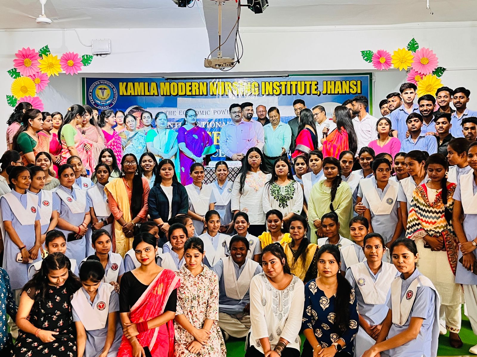 झांसी – कमला माॅडर्न नर्सिंग इन्सटीटयूट में अन्तर्राष्ट्रीय नर्सेज दिवस बडे ही धूमधाम से मनाया गया। कार्यक्रम की शुरूआत मुख्य अतिथि संस्थापक अध्यक्ष कैप्टन अरविन्द विश्वनाथन, संस्थापक अध्यक्ष डाॅ0 विनोद मिसुरया एवं संस्थापिका श्रीमती शान्ति विश्वनाथन के द्वारा फ्लोरेन्स नाइटिगंल की प्रतिमा पर दीप प्रज्जवलित एवं माल्यार्पण कर की गई।