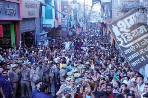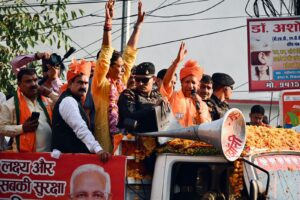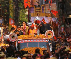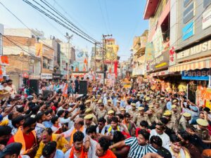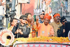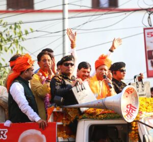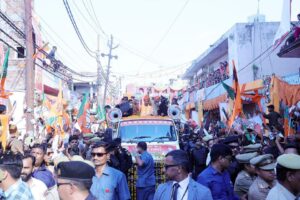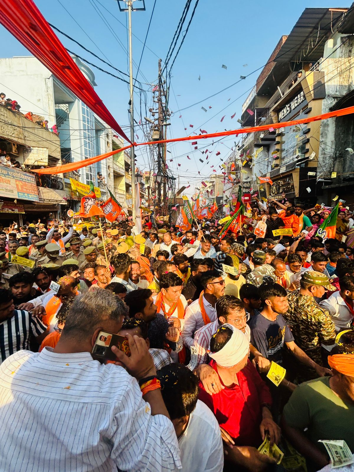 jhansi ,आज भारतीय जनता पार्टी के प्रत्याशी अनुराग शर्मा के समर्थन में झांसी महानगर में बृहद रोड शो निकल गया जिसमें मुख्य अतिथि रहे उत्तर प्रदेश के मुख्यमंत्री योगी आदित्यनाथ साथ ही मध्य प्रदेश के मुख्यमंत्री मोहन सिंह यादव भी रहे ! प्रत्येक झांसी वासी का अपने मुख्यमंत्री के प्रति स्नेह अलग ही दिखाई दे रहा था अलग-अलग स्थान पर लोग आरती लिए खड़े हुए थे, लोग योगी जी आरती उतार रहे थे ,कार्यकर्ताओं के द्वारा फूलों की वर्षा जोरदार तरीके से मुख्यमंत्री के रथ पर की जा रही थी, बच्चा ,जवान, बुजुर्ग ,माताएं ,बहने सब मुख्यमंत्री की झलक पाने के लिए उत्साहित थी, योगी आदित्यनाथ को देख प्रत्येक व्यक्ति जय श्री राम के नारे लगा रहा था.