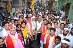 शनिवार 18 मई को सुबह 9.30 बजे एक विशाल जनसम्पर्क अभियान घास मण्डी ससे बड़ा बाजार, मुरली मनोहर मंदिर, रामलीला मंच, बड़ा गांव गेट रोड़, गुदरी बाजार, गोला कुंआ, नझाई बाजार, गंधीगर का टपरा, नरिया बाजार, राई का ताजिया, दतिया गेट अन्दर, दतिया गेट बाहर सरस्वती शिशु मन्दिर, डीएबी स्कूल से जनसम्पर्क करते हुए सिद्वेश्वर मन्दिर के समीप बने प्रांगण में विश्राम करने के बाद दो पहिया वाहनों पर तब्दली होकर भगवान शिव के दर्शन करते हुए मिशन कम्पाउण्ड, गोंदू कम्पाउण्ड, कच्चा पुल, सीपरी बाजार, रसबहार, नंदनपुरा, खातीबाबा, गढ़िया फाटक, प्रेम नगर थाने के सामने से होते हुए महावीरनपुरा, पुलिया नं0 9 हंसारी, जेल चौराहा, सदर बाजार, होते हुए कुंज वाटिका केन्द्रीय कार्यालय में पहुॅच कर विसर्जित होगा।
