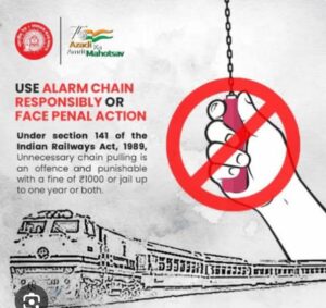 रेलगाड़ियों में अनाधिकृत / अनावश्यक रुप से अलार्म चैन पुलिंग वाले यात्रियों के प्रति रेल प्रशासन सख्त