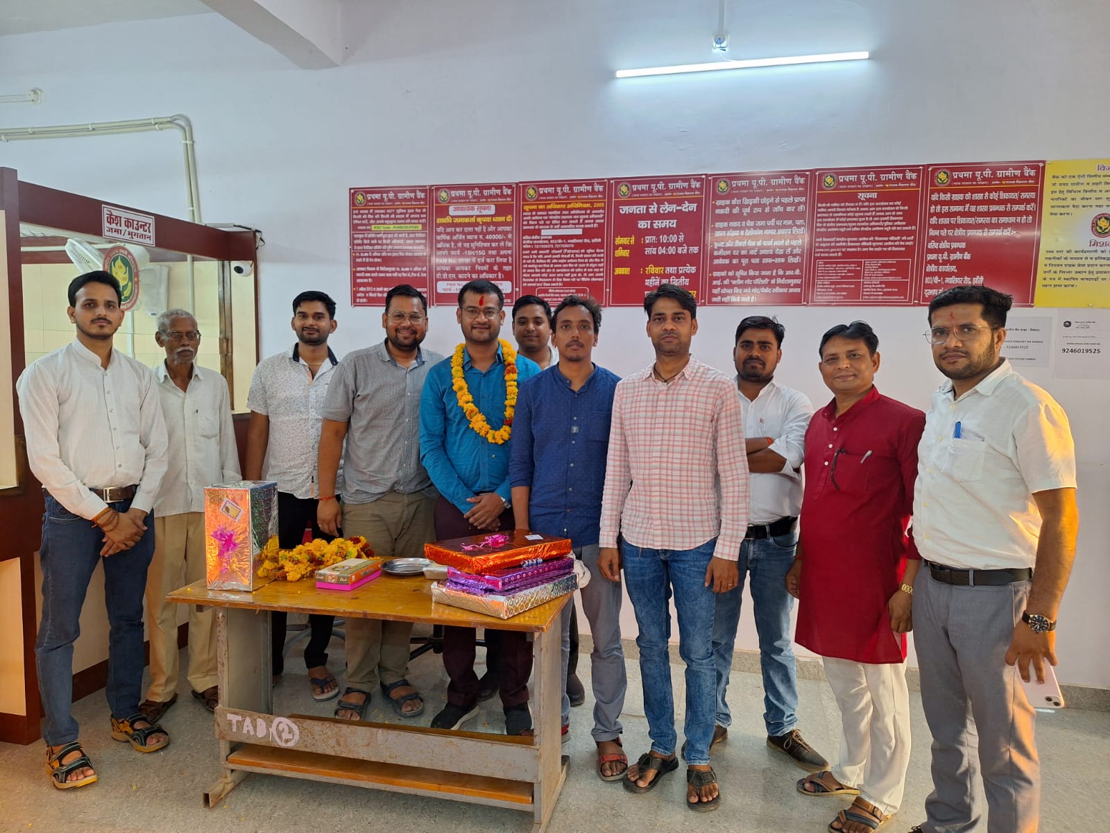 स्थान्तरण पर स्टाफ द्वारा दी गई विदाई फूलमाला व मिस्ठान खिलाकर साथी को किया विदा