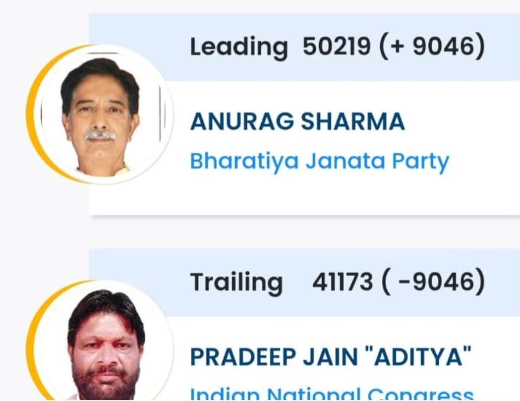 लगभग 1163 मतों से आगे बीजेपी के अनुराग शर्मा