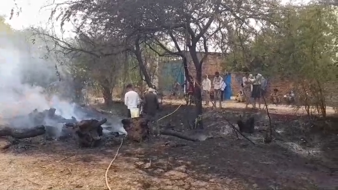मबूसा गांव के नजदीक खेत मे रखे लकड़ियों के ढेर में अज्ञात कारणों के चलते लगी आग