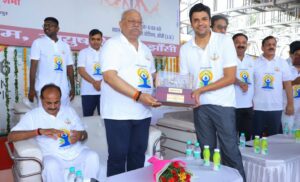 कार्यक्रम का शुभारंभ मुख्य अतिथियों भगवान धन्वंतरि जी के चित्र पर माल्यार्पण करते हुए दीप प्रज्जवलित कर किया। मुख्य अतिथि का स्वागत आतिथ्य परंपरा के अनुसार जिलाधिकारी ने पुष्प गुच्छ देकर किया। इस मौके पर बोलते हुए माननीय सभापति विधान परिषद कुंवर मानवेन्द्र सिंह जी ने कहा कि दसवां अंतर्राष्ट्रीय योग दिवस भारत की प्राचीनतम हमारे ऋषि-मुनियों द्वारा दिया गया एक विशेष उपहार है योग, आज आदरणीय प्रधानमंत्री जी के नेतृत्व में पूरी दुनिया में योग दिवस को जो मान्यता मिली है और हम लोगों ने बचपन से ही पड़ा कि स्वस्थ शरीर में स्वस्थ मस्तिष्क का निवास होता है निश्चित रूप से “करें योग रहे निरोग” हमारे ऋषि-मुनियों ने बताया था।