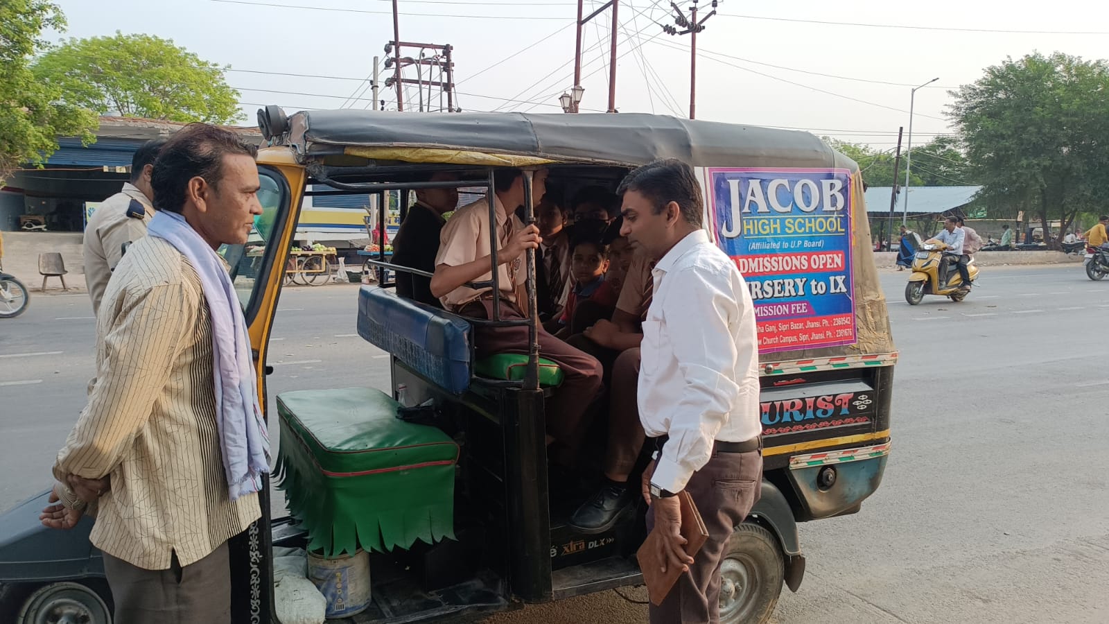 मण्डलायुक्त, झाँसी मण्डल, झाँसी तथा जिलाधिकारी, झाँसी के द्वारा दिये गये निर्देशों तथा आई०टी०एम०एस० नगर निगम के द्वारा उपलब्ध करायी गयी सूची जिसमे जनपद / शहर में ऐसे वाहन जिनकी फिटनिस, परमिट, कर आदि समाप्त है, के विरुद्ध आज दिनांक 16.03.2023 को सहायक संभागीय परिवहन अधिकारी (प्रवर्तन), प्रथम झाँसी, हेमचन्द्र सिंह गौतम, सहायक संभागीय परिवहन अधिकारी (प्रवर्तन), द्वितीय झाँसी, सुरेन्द्र कुमार अग्रवाल तथा यातायात पुलिस, झाँसी के सहयोग से शहर के विभिन्न चौराहों पर प्रवर्तन कार्यवाही का सघन अभियान चलाया गया। इस अभियान के तहत 28 टैम्पो / टैक्सी तथा अन्य वाहन जिनकी फिटनिस, परमिट, चालक लाइसेंस आदि समाप्त थे, को विभिन्न थानों (सीपरी बाजार, टी०एस०आई० तथा नबावाद) में निरुद्ध किया गया। साथ ही 38 वाहनों के विभिन्न अभियोगों में चालान किये। साथ ही स्कूली वाहनों के विरुद्ध भी सघन चेकिंग अभियान चलाया गया। मानक के विरुद्ध पाये गये स्कूली वाहन तथा स्कूली छात्र/छात्राओं को ओवरलोडिंग करते हुए पाये गये वाहनों को निरुद्ध / चालान की कार्यवाही की गयी। इस तरह के 02 वाहनों को थाने में निरुद्ध किया गया तथा 06 वाहनों का चालान किया गया।