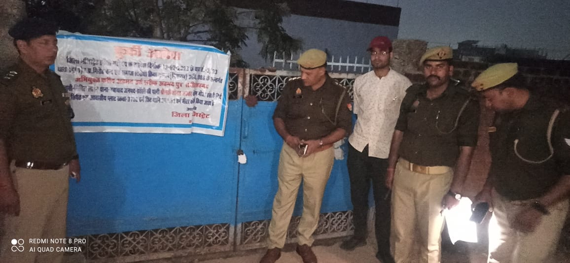 1- थाना नवाबाद पुलिस द्वारा थाने पर पंजीकृत मु0अ0सं0-420/2021 धारा- 2/3 गैंगेस्टर अधिनियम से सम्बन्धित अभियोग में श्रीमान जिला मजिस्ट्रेट महोदय के आदेश के अनुपालन में अन्तर्गत धारा 14(1) गैंगेस्टर एक्ट के तहत अभियुक्त फरीद अहमद उर्फ शरीफ अहमद पुत्र सगीर अहमद निवासी सिविल लाइन थाना नवाबाद जनपद झाँसी द्वारा अपराध से अर्जित सम्पत्ति एवट कम्पाउण्ड में स्थित मकान व हंसारी थाना प्रेमनगर स्थित आवासीय प्लॉट कीमत करीब 1,71,00,000 (एक करोड़ इकहत्तर लाख रूपये) को राज्य सरकार के पक्ष में जब्त/कुर्क किया गया ।