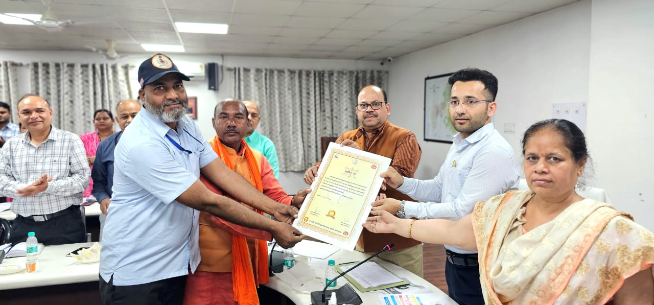 जिला स्वस्थ समिति की बैठक में मुख्य विकास अधिकारी जुनैद अहमद ने जनपद के ब्लॉक बंगरा में स्थित ग्राम मगरपुर के ग्राम प्रधान परशुराम कुशवाहा को स्वास्थ विभाग की ओर से मुख्य विकास अधिकारी द्वारा सम्मानित किया गया है।