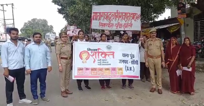 मुख्यमंत्री जी उत्तर प्रदेश सरकार द्वारा चलाए जा रहे अभियान एवं वरिष्ठ पुलिस अधीक्षक महोदया झांसी के दिशा निर्देशन में मिशन शक्ति अभियान फेस 05 के तहत थाना पूंछ के माताराजदुलारी इण्टर कॉलेज मे जाकर थाना प्रभारी जे0पी0 पाल के नेतृत्व मे थाना पूँछ मिशन शक्ति प्रभारी महिला उपनिरीक्षक पूजा चौधरी व अन्य महिला आरक्षियो अखिलेश प्रभाकर , चंचल व सुमन राठौर आदि के द्वारा छात्राओं को नारी सुरक्षा ,नारी सम्मान ,नारी स्वावलंबन के तहत बालिकाओं को विभिन्न आकस्मिक सेवाओं के हेल्पलाइन नंबर 1090, 181, 102, 108, 112, 1076, 1098, आदि के बारे में एवं विभिन्न सरकारी योजनाओं के बारे में विस्तृत जानकारी देते हुए नारी सशक्तिकरण के तहत महिलाओ को सशक्त बनाने के लिए बालिकाओं को जागरूक किया गया व जागरूकता रैली निकाली गई। एवं उनकी सुविधा हेतु पिंक कार्ड भी वितरित किए गए
