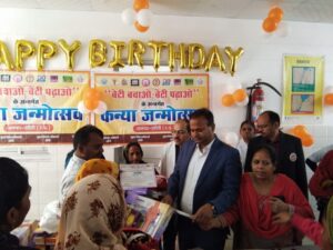 झाँसी – आज बेटी बचाओ-बेटी पढाओ योजना के अन्तर्गत जिला महिला चिकित्सालय, झाँसी में जिलाधिकारी रविन्द्र कुमार की गरिमामयी उपस्थिति में कन्या जन्मोत्सव कार्यक्रम का आयोजन किया गया। जिसमें जिलाधिकारी ने स्वयं 15 नवजात बालिकाओं एवं उनकी माताओं श्रीमती किरन जूही, पूजा, पूनम, रागिनी, सुरभि, हर्षिता, राखी, रूकसाना, पार्वती, नेहा, ज्योति, नीतू, नेहा एवं सुनीता को उपहार स्वरूप बेबी किट, मिष्ठान, बधाई प्रमाण पत्र, बेटी बचाओ-बेटी पढाओ विषयक कैलेण्डर, स्टीकर व बैच, वितरित कर कन्या जन्म उत्सव मनाया गया।
