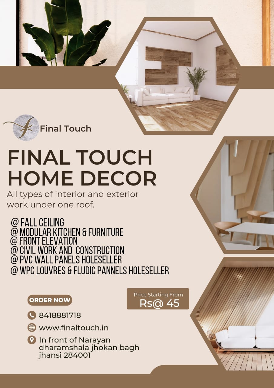 फाइव स्टार होम डेकोर प्रोपराइटर प्रियांस सोनी शुभम कंपलेक्स shop नंबर दो नारायण धर्मशाला के सामने इलाईट चौराहा से झोकन बाग जाने वाले मार्ग पर दवा घर से 20 कदम आगे मार्केट की दूसरी दुकान P.H. 8418888718 Post Views: 51 Jhansidarshan.in Post navigation बेटी नही किसी से कम, छोड़ दो अपने भ्रम , बेटियो के हक में झाँसी प्रदेश उपाध्यक्ष का कांग्रेसियो ने किया जोरदार स्वागत…