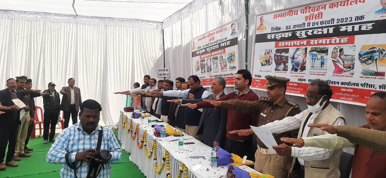 सड़क सुरक्षा माह दिनांक 05 जनवरी, 2023 से 04 फरवरी, 2023 के अंतर्गत आज दिनांक 04.02.2023 को सम्भागीय परिवहन कार्यालय प्रांगण में नगर मजिस्ट्रेट झॉसी अंकुर श्रीवास्तव के मुख्य आतिथ्य में समापन समारोह का आयोजन किया गया।