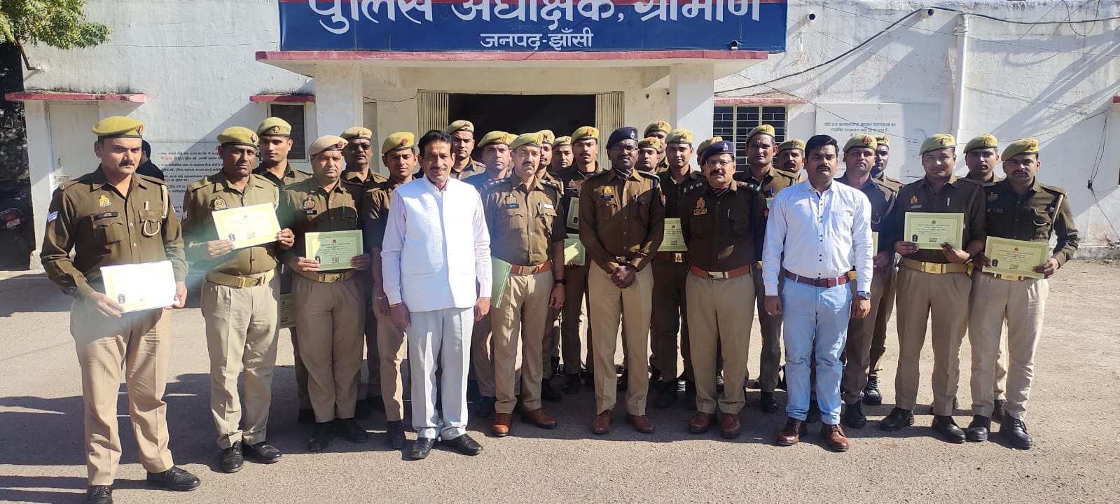 वरिष्ठ पुलिस अधीक्षक झाँसी राजेश एस महोदय के निर्देशन में उ0प्र0 पुलिस की आपातकालीन सेवा डायल यू0पी0-112 में जनपद में तैनात पुलिस कर्मियों द्वारा लगातार प्रभावी कार्यवाही की जा रही है। उत्कृष्ठ कार्य करने वाले कर्मचारी गण को उनके उत्साहवर्धन हेतु नगद पुरस्कार से पुरस्कृत किया जा रहा है।