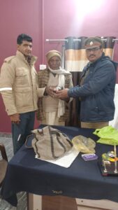 क्षेत्र गस्त के दौरान रास्ते में पडे मिले वैग में रखे 1,50,000 /- रूपये नगद व सोने चाँदी के जेवर कीमत करीब 1,00,000 /- रूपये को वैग के स्वामी को खोजकर किया सुपुर्द