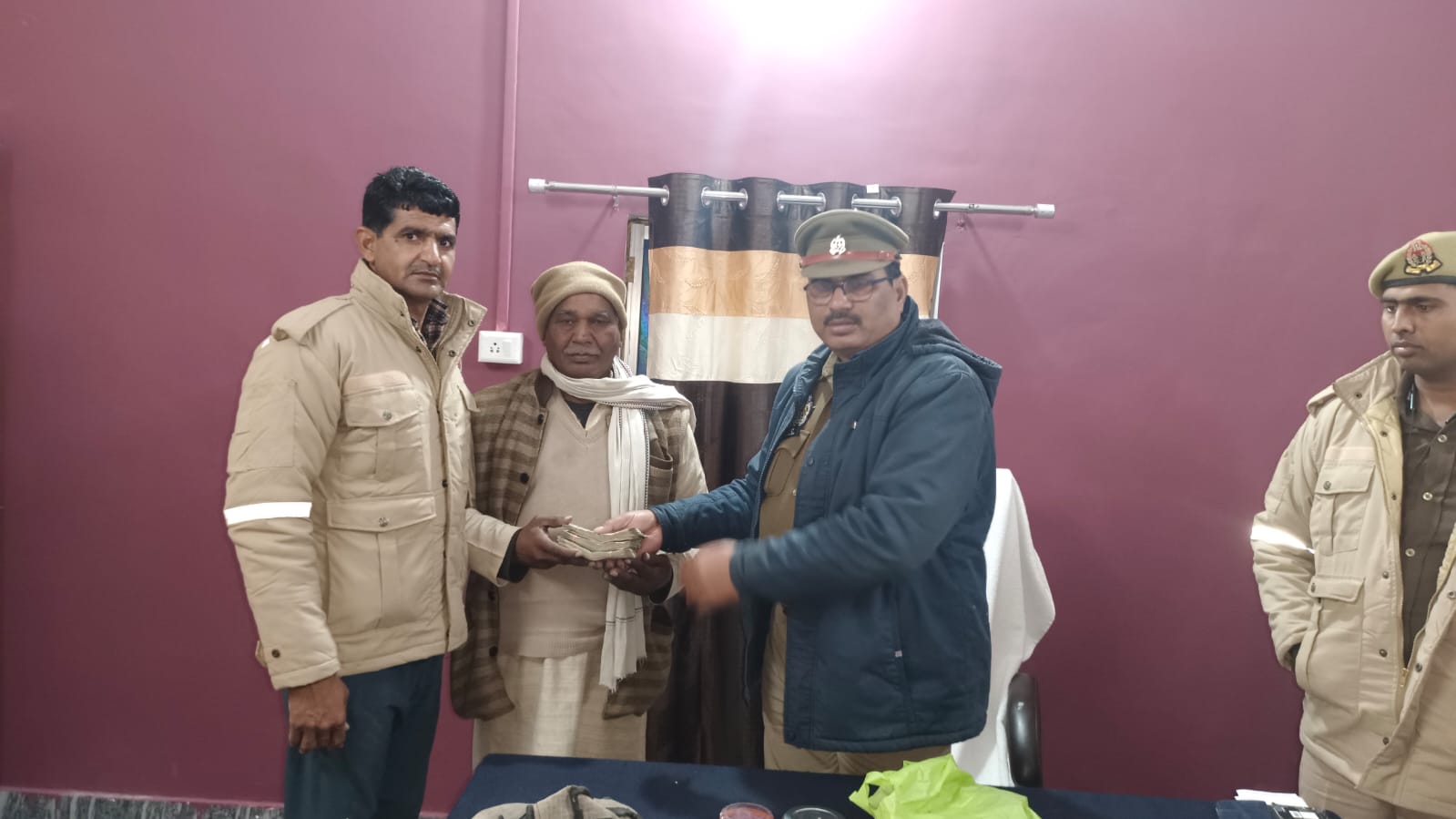 आज दिनाँक 01.02.2023 को श्री द्वारिका प्रसाद सोनी पुत्र बालाराम निवासी ग्राम बरगाँय खंगार थाना ककरवई जनपद झाँसी जो पेशे से स्वर्णकार है अपने दुकान का काम समाप्त करके गुरसराय से अपने घर ग्राम बरगांय खंगार जा रहे थे तभी रास्ते मे शाम को करीब 17.30 बजे काली माता मन्दिर के पास ग्राम ककरवई मे इनका बैग गिर गया । उसी समय श्री नरेन्द्र सिंह थानाध्यक्ष ककवरई जनपद झाँसी मय हमराह पुलिस बल के क्षेत्र मे गस्त व चेकिंग के लिये जा रहे थे जैसे ही काली माता मन्दिर के पास पहुँचे तो देखा कि एक बैग लावारिस पडा हुआ था । उस बैग को खोलकर देखा गया तो उसमे पारदर्शी थैले मे पैसा व कपडे के थैले मे कुछ सामान रखा हुया था तथा कुछ डायरी रखी हुयी थी । डायरी मे लिखे नम्बर पर सम्पर्क करके उक्त बैग के मालिक को थाने पर बुलाया गया । मालिक के सामने बैग को खुलवाया गया तो उसमे 1,50,000 /- रूपये नगद व सोने चाँदी के जेवर करीब 1,00,000 /- रूपये के मौजूद था। जिसे ग्राम प्रधान ग्राम धमनौड व कुछ सम्भ्रान्त व्यक्तियो के समक्ष उक्त बैग को बैग मालिक श्री द्वारिका प्रसाद सोनी पुत्र बालाराम निवासी ग्राम बरगाँय खंगार थाना ककरवई जनपद झाँसी को सुपुर्द किया गया। उपरोक्त सामान को पाकर श्री द्वारिका प्रसाद सोनी द्वारा झाँसी पुलिस की भूरि-भूरि सराहना करते हुये पुलिस को बहुत ही धन्यवाद दिया ।