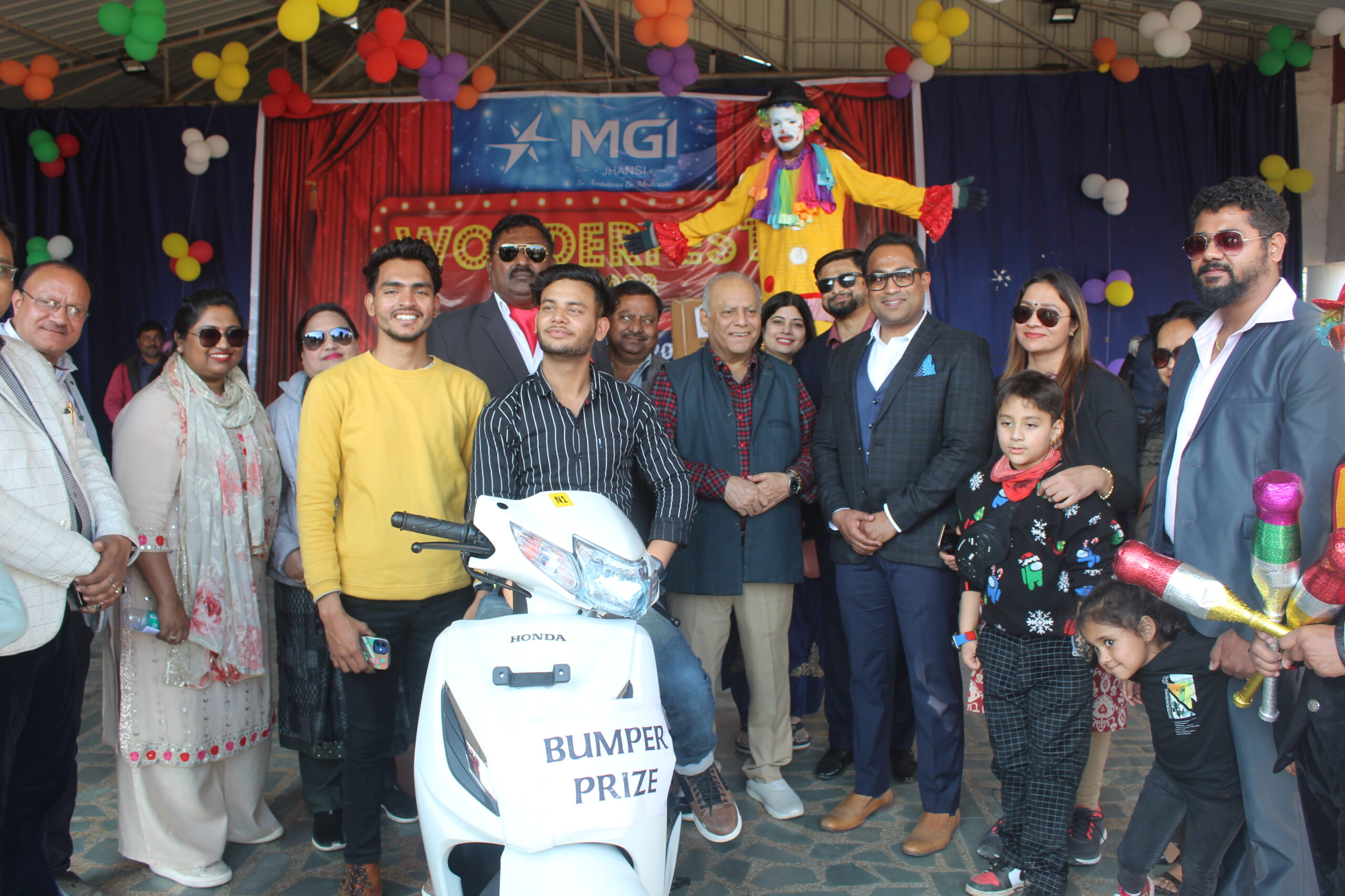 मॉडर्न ग्रुप ऑफ इंस्टीट्यूशन के संस्थापक कैप्टन अरविंद विश्वनाथन एवं संस्थापिका श्रीमती शांति विश्वनाथन ने बम्पर ड्रा में प्रथम पुरस्कार होंडा एक्टिवा तौहीद खान , द्वितीय पुरस्कार 42” LED TV कनिष्क तृतीय पुरस्कार, फ्रिज नीलम पाल को, वॉशिंग मशीन रूबी पाल, को आर ओ वॉटर प्यूरीफायर मयंक सिंघल को, माइक्रोवेव, मयंक कुशवाहा को जूसर मिक्सर, के साथ 25 विभिन्न विजेताओं को पुरस्कार प्रदान कर सम्मानित किया