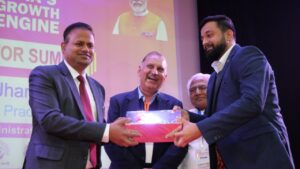 कार्यक्रम में मुख्य अतिथि के रुप में उपस्थित माननीय केंद्रीय राज्यमंत्री सूक्ष्म लघु एवं मध्यम उद्यम भारत सरकार भानु प्रताप वर्मा ने अपने संबोधन में कहा कि वर्तमान सरकार की सत्ता में आने के पश्चात बुंदेलखंड क्षेत्र में कानून व्यवस्था के शोधन उपरांत निवेश हेतु अब उपयुक्त साधन उपलब्ध हैं। उन्होंने कहा कि देश की जीडीपी में एमएसएमई का लगभग एक तिहाई योगदान है। माननीय प्रधानमंत्री जी के मार्गदर्शन में देश में अर्थव्यवस्था के विकास हेतु वर्ष 2025 तक 05 ट्रिलियन एवं प्रदेश में अर्थव्यवस्था के विकास हेतु 1 ट्रिलियन लक्ष्य का निर्धारण किया गया है। एमएसएमई के माध्यम से देश में 01 लाख औद्योगिक इकाइयां स्थापित की गई हैं, जिनके माध्यम से देश के लगभग 1.25 लाख लोगों को रोजगार प्राप्त हुआ है। झांसी जनपद में अब तक 81 निवेशकों द्वारा 4.5 करोड़ का निवेश किया गया है। 24 करोड़ आबादी के साथ 56% युवा आबादी उत्तर प्रदेश में विद्यमान है इसलिए उत्तर प्रदेश में निवेशकों के आकर्षण हेतु यहां पर पर्याप्त संख्या में मानव क्षमता उपलब्ध है। उन्होंने कहा कि कौशल विकास मिशन के माध्यम से यहां के युवकों को निरंतर विभिन्न क्षेत्रों में दक्षता संबंधी प्रशिक्षण प्रदान किए जा रहे हैं जो निवेशकों को उद्योग स्थापित करने में सहयोग प्रदान करेगा। अब निर्यात के क्षेत्र में साल दर साल 18% की वृद्धि देखने को मिल रही है। बुंदेलखंड क्षेत्र में औद्योगिक इकाइयां स्थापित करने वाले निवेशक सरकार की राज्य औद्योगिक नीतियों का लाभ उठाते हुए विकास के पथ पर और अधिक तीव्रता के साथ वृद्धि करें।