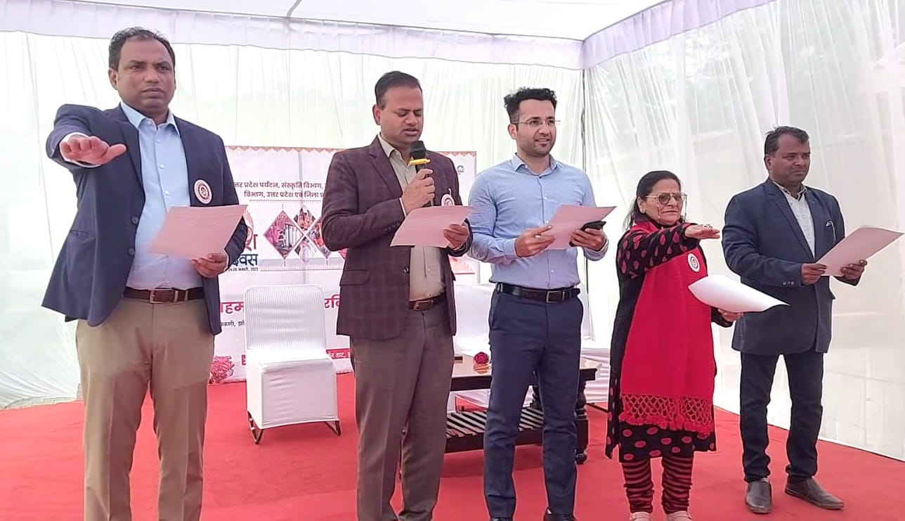 आजादी के अमृत महोत्सव की श्रृंखला में उत्तर प्रदेश दिवस का आयोजन उत्तर प्रदेश पर्यटन विभाग, उ0प्र0 संस्कृति विभाग, सूचना एवं जनसंपर्क विभाग उत्तर प्रदेश एवं जिला प्रशासन झांसी के संयुक्त तत्वावधान में दिनांक 24 जनवरी, 2023 को अर्बन हाट प्रांगण में कार्याक्रम का शुभारम्भ जिलाधिकारी श्री रविन्द्र कुमार द्वारा किया गया।