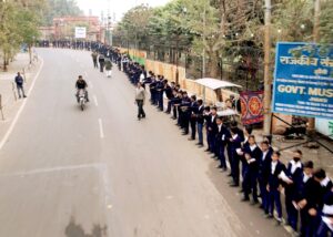 झाँसी नगरीय क्षेत्र में इलाइट चौराहे से झाँसी किला तक नगर के विभिन्न विद्यालयों के छात्र / छात्राओं तथा नागरिक सुरक्षा के सदस्यों द्वारा मानव श्रृंखला का निर्माण किया गया। उक्त मानव श्रृंखला में करीब 6000 बच्चों द्वारा प्रतिभाग किया गया।