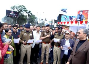 ** इस अवसर पर वरिष्ठ अधिकारियों द्वारा नागरिकों को दिलाई गई सड़क सुरक्षा जागरूकता शपथ