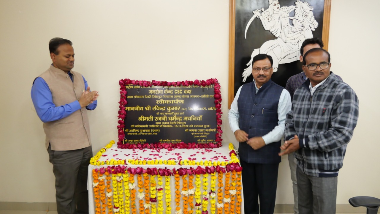 आज मुख्य अतिथि जिलाधिकारी रविन्द्र कुमार द्वारा विकास खंड बंगरा की ग्राम पंचायत देवरीसिंहपुरा में कामन सर्विस सेंटर (सीएससी) का वर्चुवल लोकार्पण किया गया ।समारोह को संबोधित करते हुए जिलाधिकारी ने कहा कि भारत गांवो का देश है। गांवो के विकास से ही देश का विकास होता है। इसी क्रम में उत्तर प्रदेश सरकार का संकल्प है कि गांवो मे भी सभी मूल भूत सुविधाएं होनी चाहिए कामन सर्विस सेंटर इसी का मूर्त रुप है।