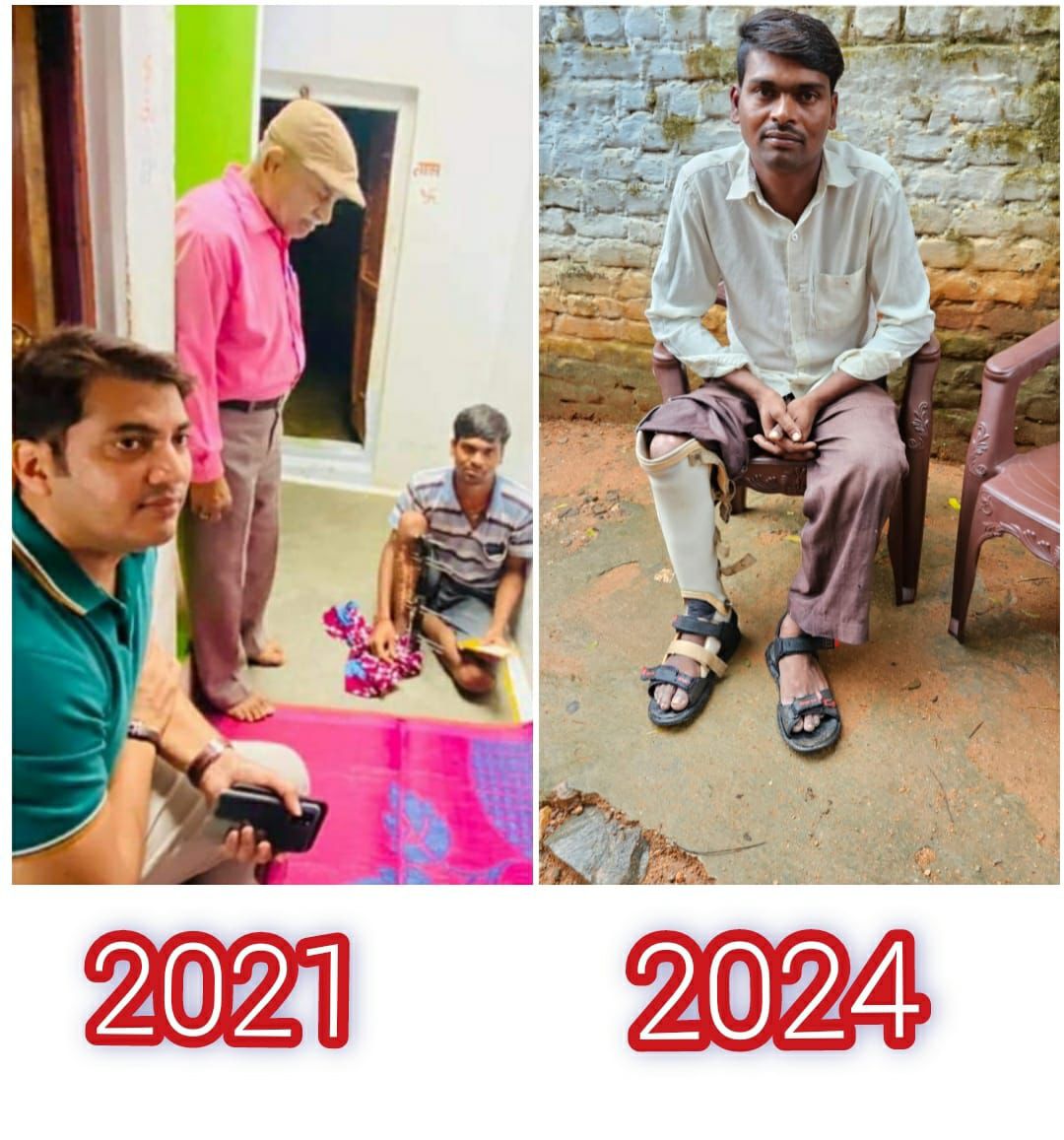 झांसी के बबीना कस्बे के मातनपुरा मोहल्ले में रहने वाले जीतू रैकवार को सन 2016 में हुए एक एक्सीडेंट में पैर में गंभीर चोट लग गई थी परिवार का बोझ और आर्थिक रूप से कमजोर होने के बाद रिस्तेदारो की मदद से तीन साल झांसी में अलग अलग हॉस्पिटल में इलाज कराने के बाद एक समय ऐसा आया की जीतू अपना आर्थिक मजबूरी की कारण अपना इलाज कराने में असमर्थ हो गया मदद करने वाले रिश्तेदारों ने आगे मदद करने में अपने हाथ खड़े कर दिए इलाज रुक जाने के कारण जीतू का पैर कटने की नौबत आ गई पत्नी ने भी विकलांग हो जाने पर साथ छोड़ने की बात कह डाली तब जीतू की मुलाकात सन 2021 में नया सवेरा ट्रस्ट के मुख्य ट्रस्टी यशपाल सिंह यादव से हुई जिन्होंने जीतू को आश्वस्त किया वह उसे उसके पैरों पर खड़ा करने तक उसका साथ देते हुए हर संभव मदद करेगे और जीतू का इलाज यशपाल यादव ने दिल्ली के प्रसिद्ध अस्पताल में अपने खर्चे पर करवाना शुरू कर दिया लगभग 3 साल से लंबे समय तक इलाज चला और जिसका नतीजा यह रहा कि आज जीतू अपने पैरों पर चलने लगा है वह अपने परिवार के भरण पोषण के लिए भी काम करने लगा है जीतू और उसके परिवार ने मानवता की सेवा करने वाली संस्था नया सवेरा के मुख्य ट्रस्टी यशपाल यादव का आभार व्यक्त किया है