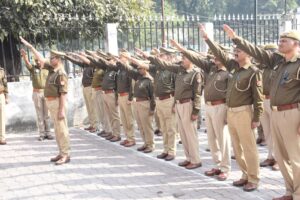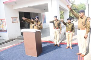 एस.एस.पी. झांसी द्वारा झांसी पुलिस को यातायात नियमों का पालन हेतु सड़क सुरक्षा सम्बन्धी दिलायी गयी शपथ