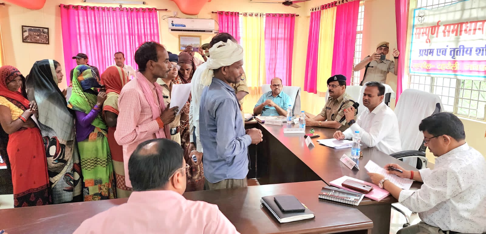 जिलाधिकारी रविंद्र कुमार ने सम्पूर्ण समाधान दिवस पर अधिक संख्या में भूमि सम्बन्धित/अवैध कब्जों की शिकायतों पर उन्होंने कहा कि आप मूल कार्यो में रुचि लें और अपने क्षेत्र में जाये तथा सेक्टर आदि की स्वयं नाप करें ताकि भूमि विवाद उत्पन्न ही ना हो।उन्होंने समस्त लेखपालों को निर्देश दिए कि गलत ढंग से भूमि पर कब्जा करने वालों के विरुद्ध एफआईआर दर्ज करते हुए मुकदमा दर्ज करने की कार्यवाही करना सुनिश्चित करें। उन्होंने कहा कि आप अपने मूल कार्यों को संवेदनशील होकर करें, उन्होंने यह भी कहा कि भूमि विवाद ना निपटने की स्थिति में लेखपाल 107/16 की कार्यवाही करें या धारा 145 पर भी कार्यवाही कर सकते हैं।