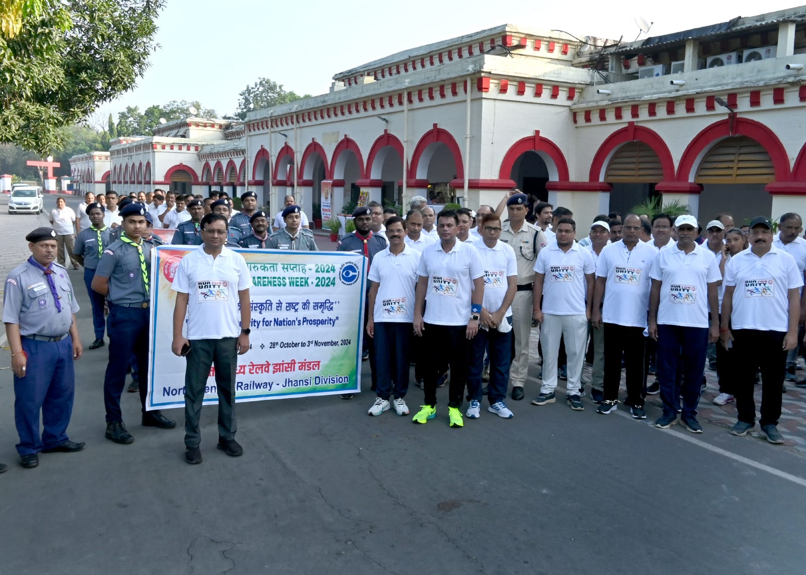 इसी क्रम में आज दिनांक 29.10.2024 को मंडल रेल प्रबंधक दीपक कुमार सिन्हा की अध्यक्षता में “रन फॉर यूनिटी” कार्यक्रम के तहत मंडल रेल प्रबंधक कार्यालय, झाँसी से सीनियर रेल संस्थान तक दौड़ का आयोजन किया गया I जिसमें अपर मंडल रेल प्रबंधक आर डी मौर्या, वरिष्ठ मंडल अभियंता (समन्वय ) आशुतोष चौरसिया, वरिष्ठ मंडल वाणिज्य प्रबंधक अमन वर्मा, वरिष्ठ मंडल परिचालन प्रबंधक अखिल शुक्ल, वरिष्ठ मंडल कार्मिक अधिकारी ब्रिजेश चतुर्वेदी, वरिष्ठ मंडल सुरक्षा आयुक्त विवेकानंद नारायण सहित अन्य सभी शाखाधिकारी उपस्थित रहे I