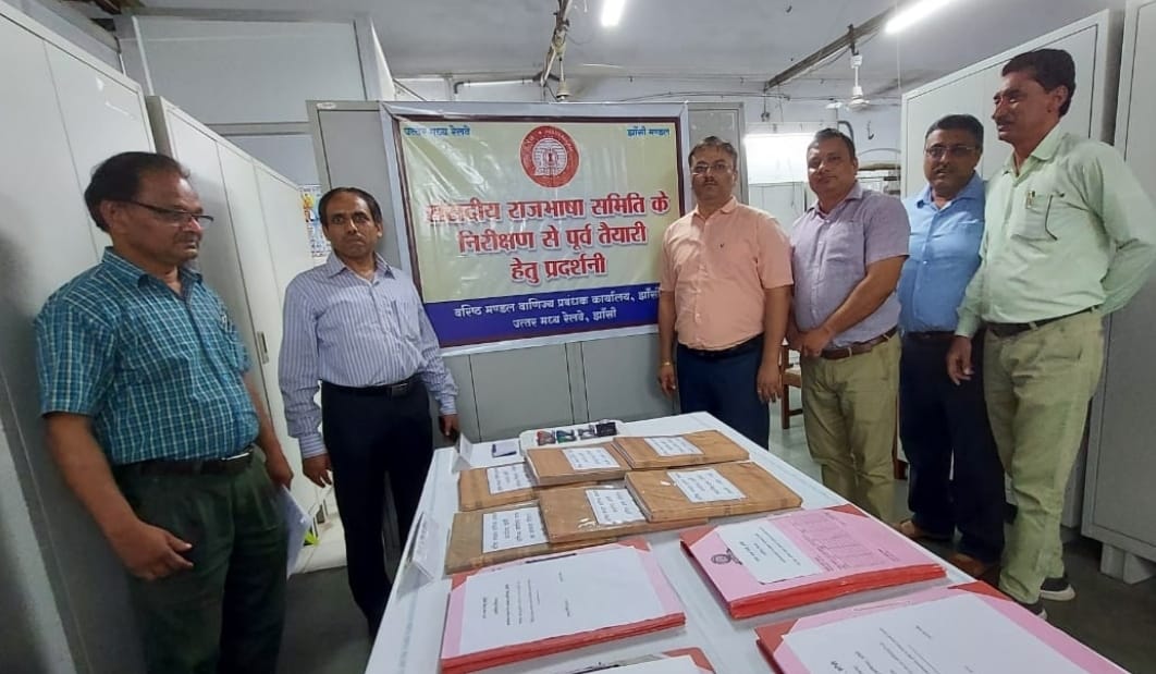 आज दि. 07.09.22 को नवागत अपर मंडल रेल प्रबंधक, परिचालन एवं अपर मुख्य राजभाषा अधिकारी, झांसी श्री दीपक प्रकाश गर्ग ने वाणिज्य शाखा द्वारा लगाई गई राजभाषा प्रदर्शनी का उद्घाटन तथा निरीक्षण किया। इस प्रदर्शनी निरीक्षण के दौरान वरिष्ठ मंडल वाणिज्य प्रबंधक प्रथम नवीन दीक्षित तथा वरिष्ठ मंडल वाणिज्य प्रबंधक द्वितीय अखिल शुक्ल ने अपर मंडल रेल प्रबंधक महोदय को वाणिज्य शाखा द्वारा हिंदी में किए जा रहे कार्य का विस्तृत लेखा जोखा प्रस्तुत किया। इस अवसर पर वाणिज्य विभाग के अन्य वरिष्ठ कर्मचारी उपस्थित रहे।