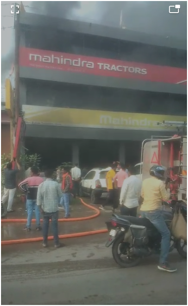 महिंद्रा ट्रैक्टर ऐजेंसी में लगी भीषण आग, करोड़ों का सामान जल कर खाक,