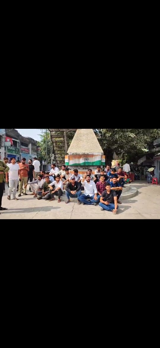 जालौन के उरई में धरने पर बैठे बीजेपी कार्यकर्ता,