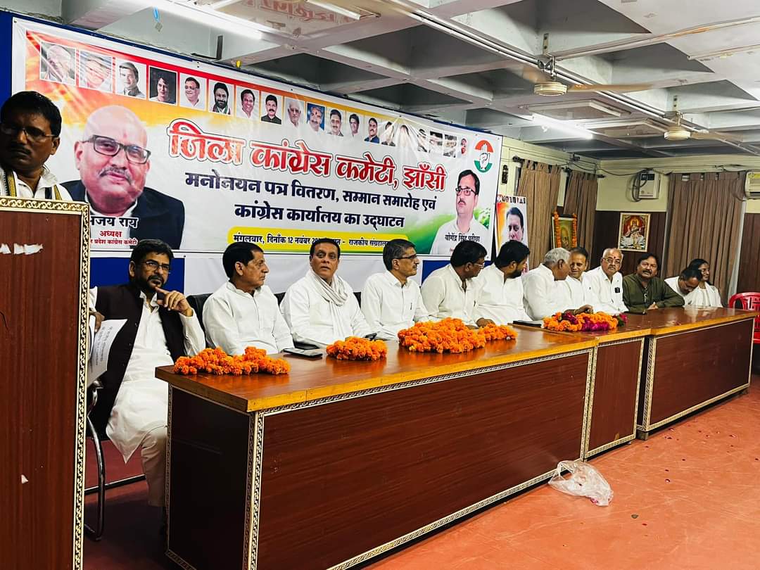 झांसी। आज उत्तर प्रदेश कांग्रेस कमेटी के निर्देशानुसार प्रदेश अध्यक्ष अजय राय द्वारा जिला कांग्रेस कमेटी झांसी की कार्यकारिणी के अनुमोदन के पश्चात आज राजकीय संग्रहालय झांसी में जिला कांग्रेस कमेटी के अध्यक्ष योगेंद्र सिंह पारीछा की अध्यक्षता में पूर्व केंद्रीय मंत्री प्रदीप जैन आदित्य के मुख्य अतिथि तथा पूर्व विधायक बृजेंद्र व्यास, पूर्व राष्ट्रीय सचिव सुधांशु त्रिपाठी, मध्य प्रदेश कांग्रेस के प्रदेश महासचिव गुड्डू राजा बुंदेला, प्रदेश महासचिव राहुल रिछारिया, प्रदेश सचिव अनुज मिश्रा, शहर अध्यक्ष मनोज गुप्ता के विशिष्ट आतिथ्य में जिला कार्यकारिणी की प्रथम बैठक राजकीय संग्रहालय के सभागार में आयोजित की गई।