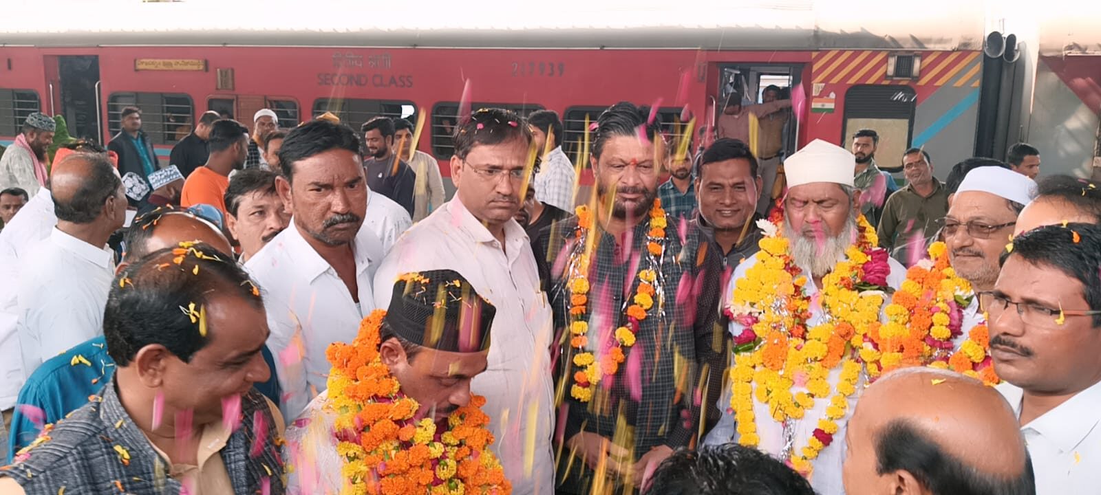 उमरा करने जा रहे अकीकत मंदो को कांग्रेस जनों ने फूल माला पहनकर रवाना किया।