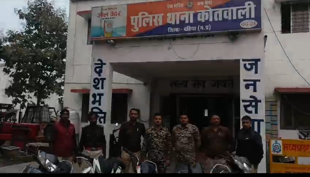 श्रीमान पुलिस अधीक्षक जिला दतिया वीरेन्द्र मिश्रा एवं श्रीमान अतिरिक्त पुलिस अधीक्षक सुनील शिवहरे व श्रीमान एसडीओपी सुश्री प्रियंका मिश्रा के कुशल मार्ग दर्शन मे दिनाँक 19/11/24 को थाना हाजा के अपराध क्र. 882/24 धारा 303(2) बीएनएस में ओम केवट पुत्र हरकिशन केवट उम्र 18 वर्ष निवासी जिला अस्पताल के पीछे दतिया से स्कूटी क्र. एमपी /32/एमई/6396 को बरामद किया गया एवं अपराध क्र. 592/24 धारा 303(2) बीएनएस में दिनाँक 20/11/24 को आरोपी मोनू पुत्र राम रतन कुशवाह उम्र 02 वर्ष निवासी ईदगाह मौहल्ला दतिया को गिरफ्तार कर आरोपी से 1. होंडा की मोटर साईकिल क्र. MP/32/MJ/8409, 2. एचएफ डीलक्स क्र. MP/32/MC/0470, 3. एक्टिवा क्र. MP/32/MG/9351, तथा अपराध क्र. 905/24 में बाल अपचारी से मोटर साईकिल क्र. MP/32/MJ/0825 को जप्त किया गया ।