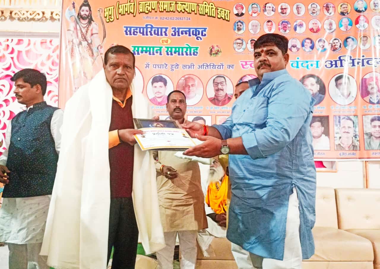 भार्गव समाज का भव्य अन्नकूट एवं सम्मान समारोह संपन्न