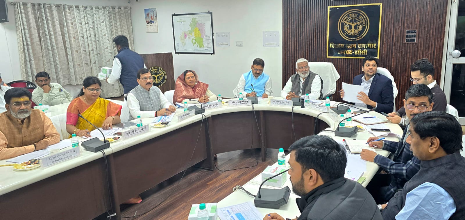 मंत्री (सिंचाई एवं जल संसाधन बाढ़ नियंत्रण परती भूमि विकास लघु सिंचाई नमामि गंगे एवं ग्रामीण जलापूर्ति विभाग), उत्तर प्रदेश स्वतंत्र देव सिंह जी ने विकास भवन सभागार में जनपद झांसी में क्रियान्वित की जा रही। गुलारा, पुरवा एंव तिलैथा ग्राम समूह पेयजल योजनाओं की समीक्षा करते हुए शून्य से 70 प्रतिशत तक पूर्ण करने पर प्रसन्नता व्यक्त की और इसे सफल बनाने के लिए प्रधानों को