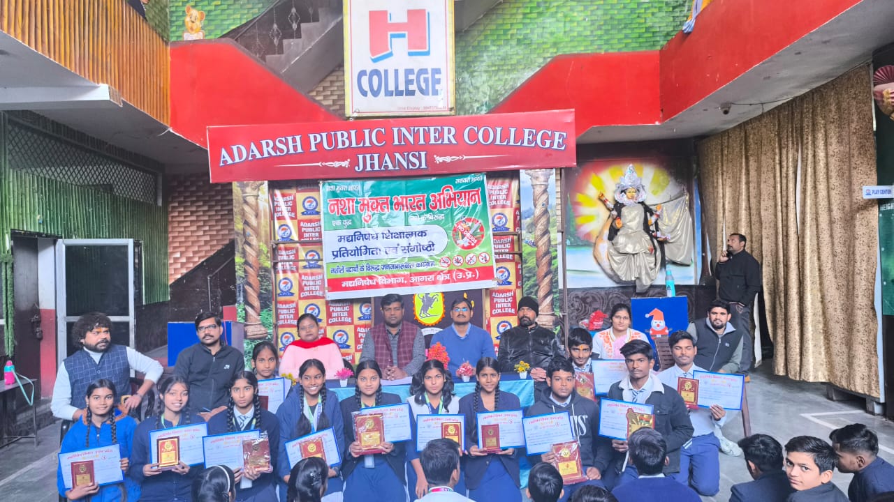 झांसी : आज आदर्श पब्लिक इंटर कॉलेज ग्वालियर रोड झांसी में नशा मुक्ति जागरूकता अभियान का मद्यनिषेध विभाग आगरा क्षेत्र झांसी द्वारा आयोजन किया गया, जिसमें उपक्षेत्रीय मद्यनिषेध अधिकारी उपदेश कुमार द्वारा मुख्य अतिथि के रूप में प्रतिभाग किया गया। मुख्य अतिथि की अगवाई में विद्यालय में बच्चों को बारीकी से नशे की बुराइयों से अवगत कराया। मद्य निषेध विभाग के विमल कुमार द्वारा बताया गया कि यह अभियान मुख्यमंत्री जी के दिशा-निर्देशन में विभाग द्वारा जनपद के विभिन्न शैक्षणिक संस्थाओं में नशा मुक्ति जागरूकता अभियान के माध्यम से मादक पदार्थों के प्रभावों की जानकारी देते हुए आने वाली पीड़ी को सजग किया जा रहा है।
