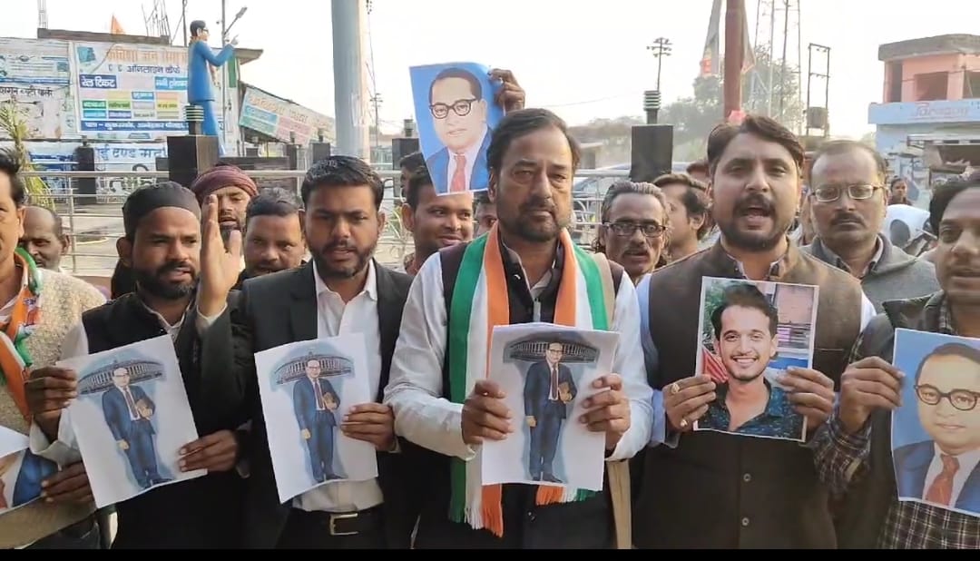 कांग्रेसियों ने बाबा साहब की प्रतिमा के पास एकत्रित होकर लगाए अमित शाह और बीजेपी मुर्दाबाद के जमकर नारे,