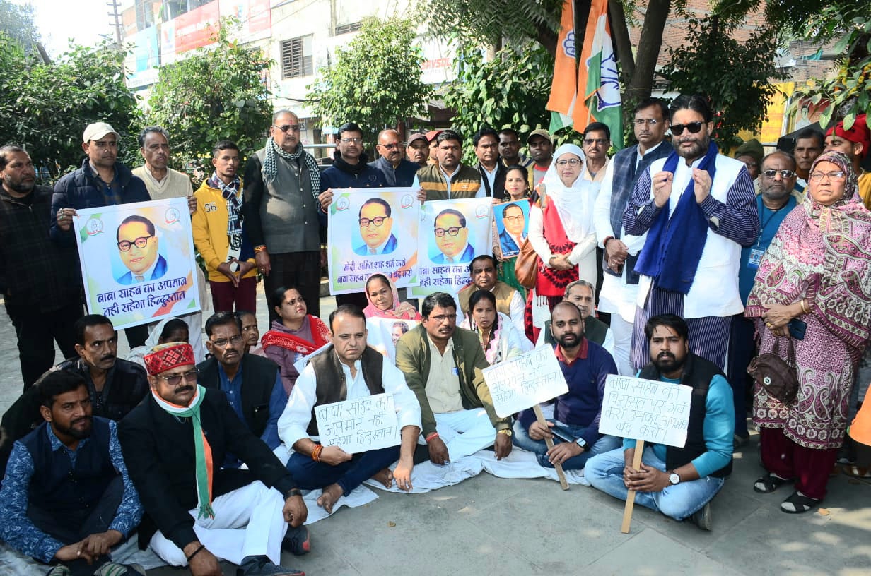 झांसी: आज उत्तर प्रदेश कांग्रेस कमेटी के आदेश अनुसार जिला एवं शहर कांग्रेस कमेटी के संयुक्त तत्वावधान में देश की सबसे बड़ी पंचायत में देश के गृहमंत्री अमित शाह द्वारा भारत रत्न डॉ. भीमराव अंबेडकर के प्रति अभद्र टिप्पणी किए जाने तथा इसका विरोध किए जाने पर लोक सभा में विपक्ष के नेता राहुल गांधी के खिलाफ झूठा मुकदमा दर्ज किए जाने के विरोध में अंबेडकर नगर तालपुरा स्थित डॉ .अंबेडकर पार्क में पूर्व केंद्रीय मंत्री प्रदीप जैन आदित्य के मुख्य अतिथि एवं जिला अध्यक्ष योगेंद्र सिंह पारीछा की अध्यक्षता में विरोध प्रदर्शन किया गया।