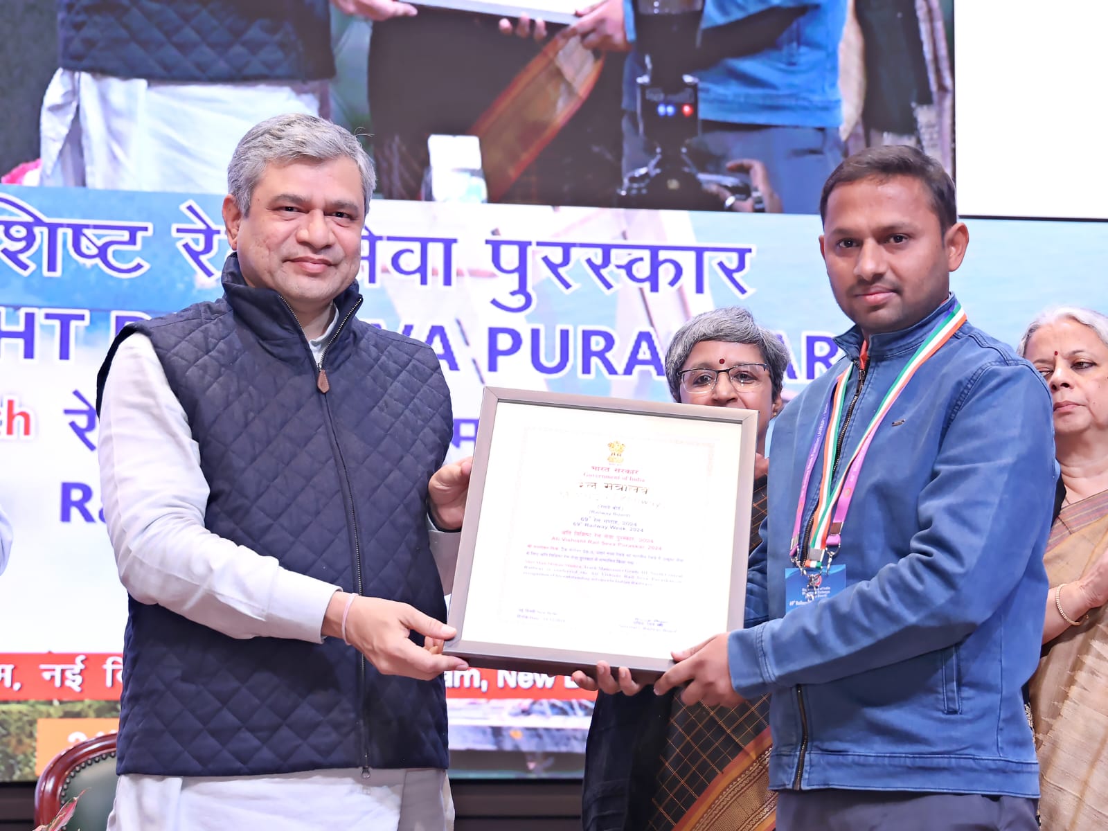 हरवर्ष की भाति इस वर्ष भी अति विशिष्ट रेल सेवा पुरस्कार समारोह का आयोजन हुआ। इसमे माननीय केंद्रीय मंत्री, रेल, सूचना एवं प्रसारण और इलेक्ट्रॉनिक्स, सूचना प्रौद्योगिकी, अश्विनी वैष्णव द्वारा दिनांक 21.12.2024 को भारत मंडपम दिल्ली में रेल कर्मचारियो एवं अधिकारियों को सम्मानित किया गया। इसमें उत्तर मध्य रेलवे के झांसी मंडल के मनमोहन मिश्र को अति विशिष्ट रेल सेवा पुरस्कार समारोह 2024 के लिए सम्मानित किया गया । इस समारोह में झांसी मंडल के मनमोहन मिश्र सहित उत्तर मध्य रेल्वे के 05 कर्मचारी और अधिकारीसम्मानित किए गए।