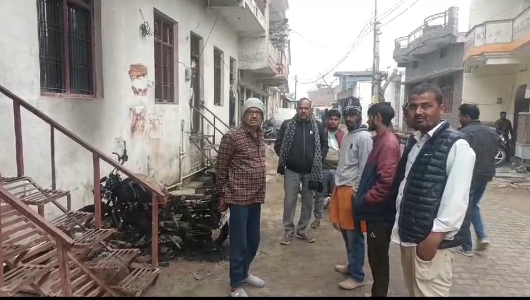 प्रताड़ित पिता अपनी बेटी को लेकर आया घर, दामाद ने घर आकर गाली गलौज कर लगायी बाहर खड़ी मोटरसाइकिल में आग,