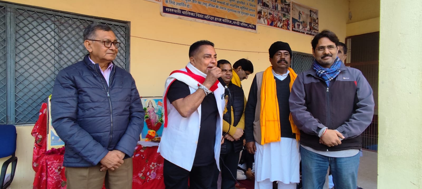 कार्यक्रम मे राजा बुंदेला के साथ डॉ दिलीप अग्रवाल, एडवोकेट अनिल वैद ,अंकुर यादव, संजीव सोनी सरस्, पूर्ब प्रधानाचार्य बृजबल्लभ सेंगर, ने माँ सरस्वती के चरणों मे पुष्प अर्पित किये