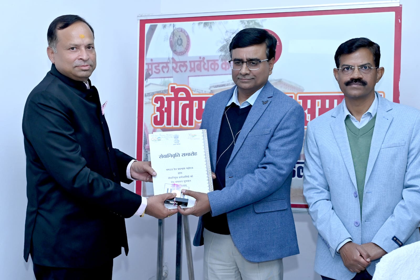 मंडल रेल प्रबंधक ने इस अवसर पर सभी सेवानिवृत होने वाले कर्मचारियों को भारतीय रेल में उनकी लम्बी अवधि की सफलतम सेवा के लिये बधाई एवं शुभकामनाएँ दी तथा स्वास्थ्य और सुखद व मंगलमय भविष्य की कामना की । सेवानिवृत होने वाले कर्मचारियों को विदाई देते हुए यह भी आश्वासन दिया गया कि उनकी सेवानिवृत्ति के उपरान्त भी वे रेल परिवार का हिस्सा रहेंगे।